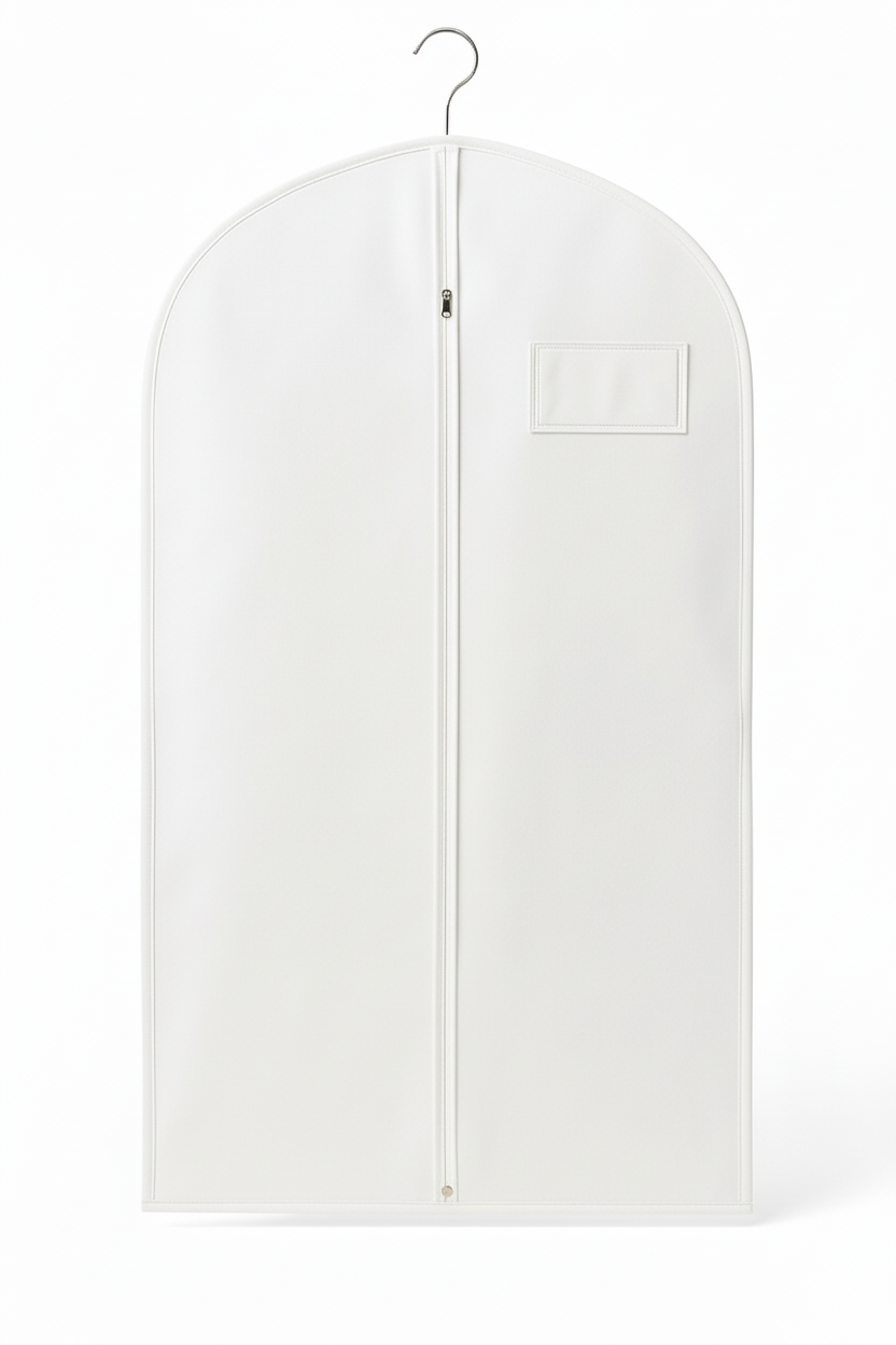 Non Woven Coat and Suit Cover 40" is a breathable, reusable, and eco-friendly non woven garment bag offers reliable protection for your suits, coats, and dresses. Designed as a 40-inch dustproof, foldable garment storage bag, it’s ideal for travel or wardrobe use. The non woven clothing storage bag keeps your garments clean, fresh, and wrinkle-free. Perfect as a garment protector bag or non woven coat protector, ensuring long-lasting care for your favorite outfits.